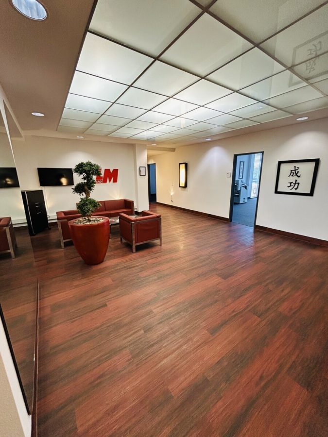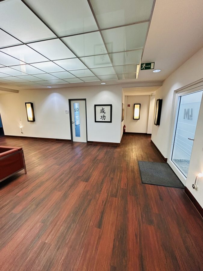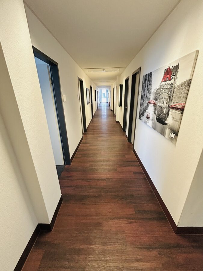 - Vinylboden in den Fluren und Teppich in den Büroräumen